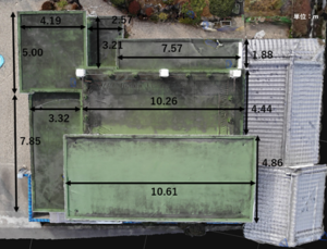 ドローン撮影による建物のグリッド撮影 |